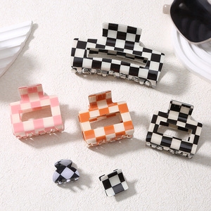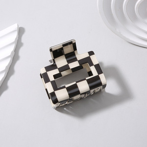 定制跨境小抓夹少女风韩式简约时尚发抓女黑白格子大理石小夹子