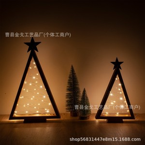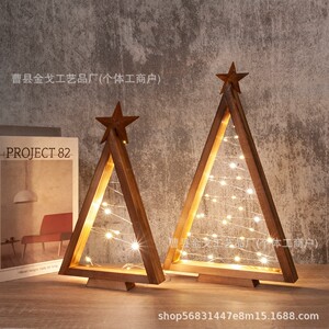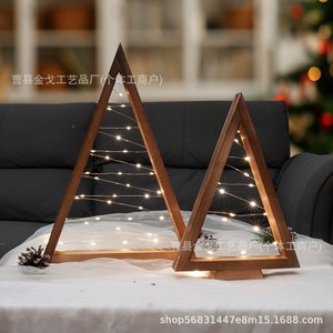 木质发光圣诞树装饰摆件实木带灯串家居氛围装饰品三角架节日礼物