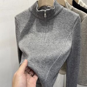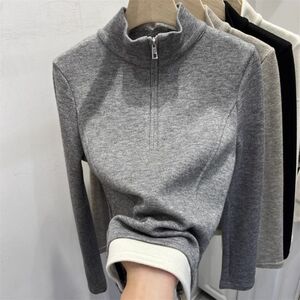 设计感小众半拉链立领长袖T恤女秋冬内搭外穿修身德绒打底衫上衣