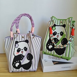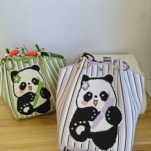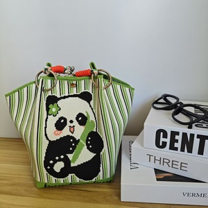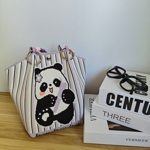菜篮子手提包2025新款高级感熊猫针织包休闲百搭大容量编织包