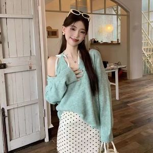 纯欲挂脖吊带针织衫毛衣女装秋冬新款宽松显瘦外搭长袖上衣两件套