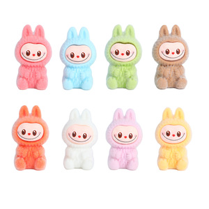 卡通树脂立体植绒坐地拉布布 DIY奶油胶配件桌面摆件车载挂件批发