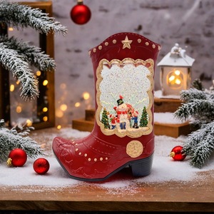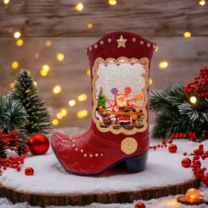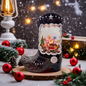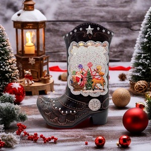 圣诞靴装饰水灯水晶灯创意音乐盒 派对装饰桌面摆件圣诞装饰品