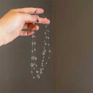 设计感多层冰透大小珠珠项链鱼线流苏超美时尚百搭锁骨项链饰品