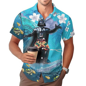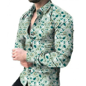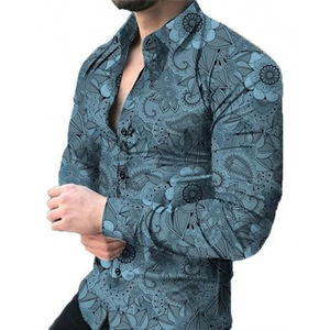 速卖通亚马逊独立站欧美3D时尚复古花草图案印花男士长短袖衬衫