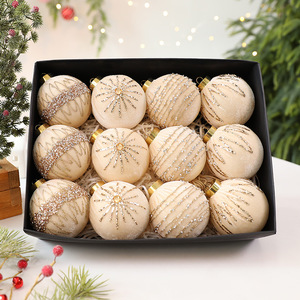 8CM/12PCS闪钻丝绒包布圣诞球套装 diy圣诞树装饰球橱窗挂饰现货