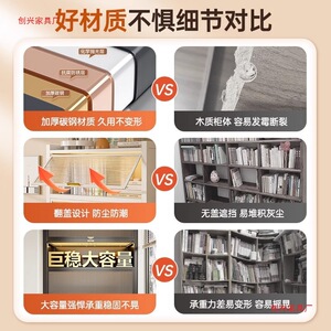 家用钢制书柜带门落地多层书架卧室客厅防尘展示收纳储物柜置物架