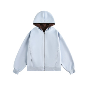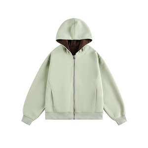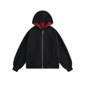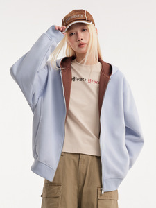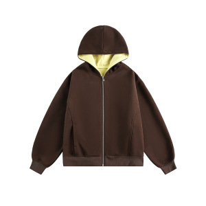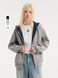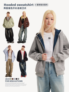CATTEE美式复古撞色开衫连帽卫衣男女秋潮牌秋季短款休闲情侣外套
