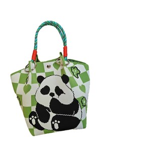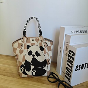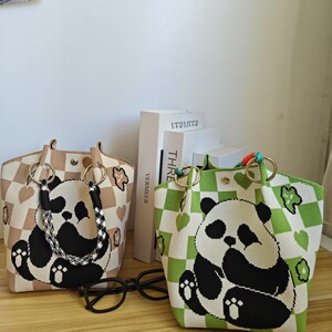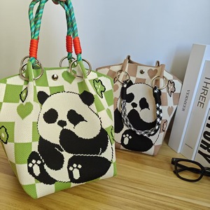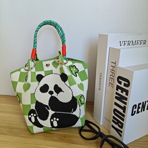 新款韩版熊猫多巴胺时尚百搭针织包大容量手提包饭盒包日常手拎包