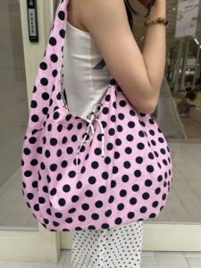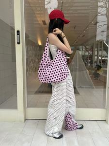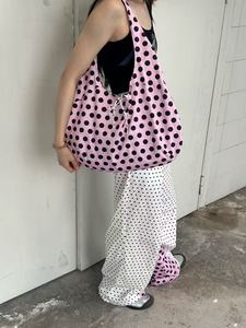 DISKETTE白色粉色爱心波点拼接双面单肩包2025新款大容量托特包女