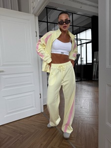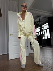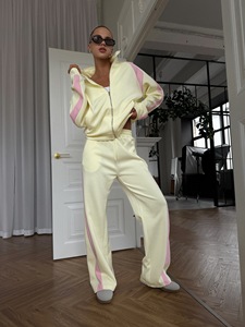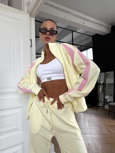 クロスボーダーアマゾンの新しいジッパースポーツスウェットシャツレディーススーツコントラストカラーステッチスタンドカラールーズトレンド2点セット