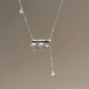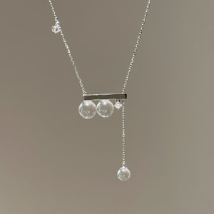 水晶球夏日清透感几何平衡木水晶球闪钻项链女轻奢简约百搭颈链