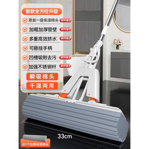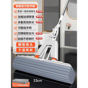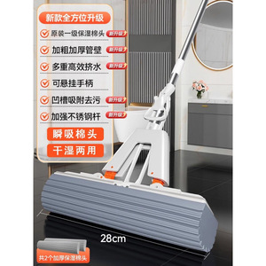家庭用ハンズフリースポンジモップ、新しい吸水性折りたたみ式大型ダブルスクイーズ水性コットン脱水