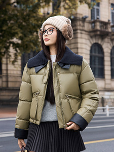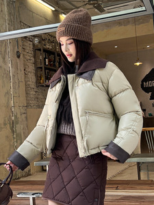 外贸小个子pu皮2025短款羽绒棉服女冬季针织新款撞色保暖棉袄外套