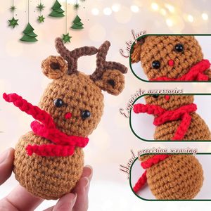 国境を越えた売れ筋の手作りかぎ針編み人形クリスマスギフト4点セットサンタクロース雪だるまヘラジカニットおもちゃ