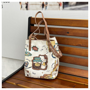 简约豹纹包包菜篮子水桶包女新款休闲大容量女包小众高级感单肩包