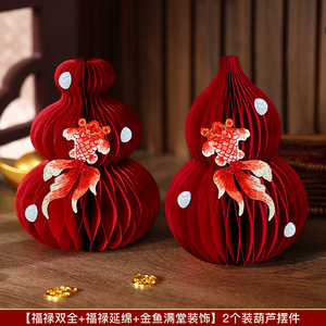 【福禄双全+福禄延绵+金鱼满堂装饰】2个装葫芦摆件