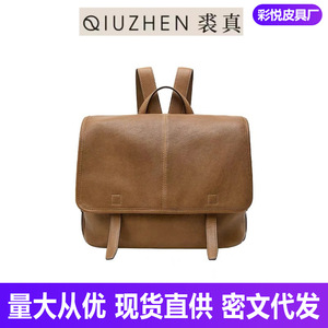 裘真植鞣羊皮信使系列双肩包大容量上班通勤休闲背包2025新款