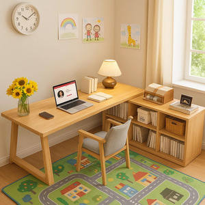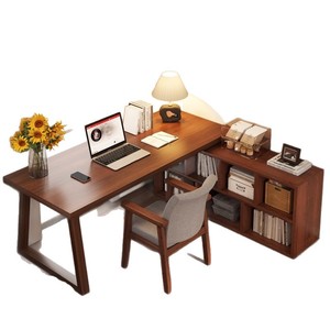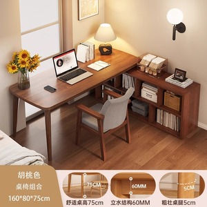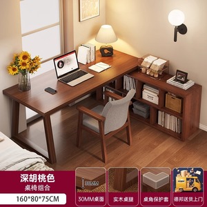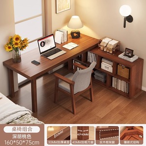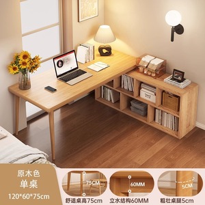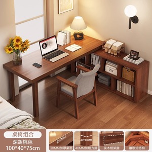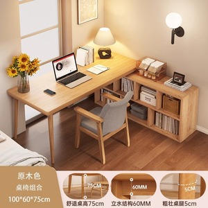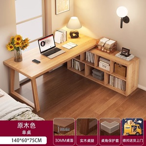 实木书桌原木风学习桌简易台式桌小户型卧室桌椅书桌书柜一体桌子