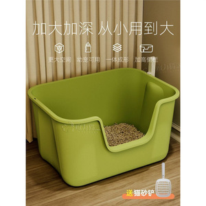 加厚猫砂盆超大号正方形防外溅半封闭式屎盆防带砂特大加高猫厕所