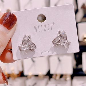 轻奢风交叉梯形方钻耳钉 925純銀耳饰 小众高级感甜美百搭耳环银针