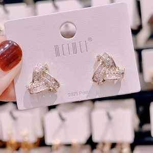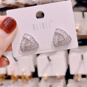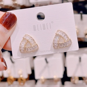 美薇小香风耳饰锆石三角形耳钉轻奢高级感耳环爆款气质网红耳坠女