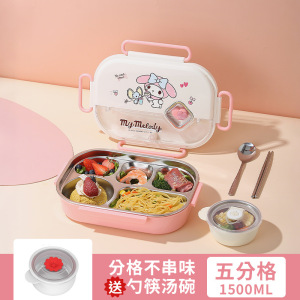 三丽鸥hellokitty316保温饭盒学生食堂打饭分格餐盘幼儿加热饭盒