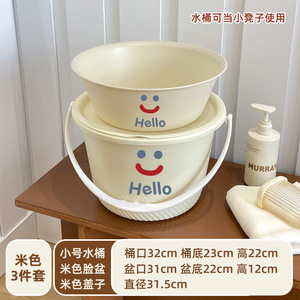 笑脸款奶油色三件套【小号水桶+盖子+脸盆】