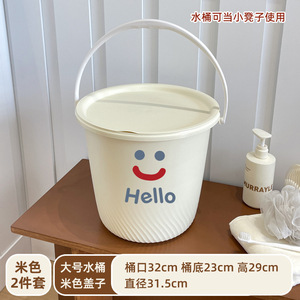 笑脸款奶油色两件套【大号水桶+盖子】