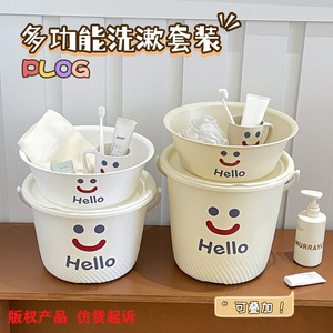 笑脸款奶油色三件套【大号水桶+盖子+脸盆】
