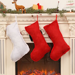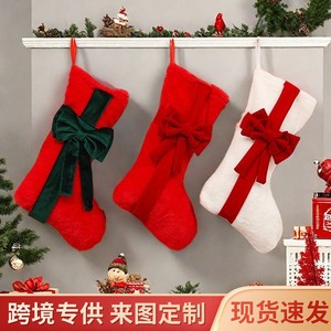 2025新款红色毛绒圣诞袜立体蝴蝶结壁炉礼物袋装饰派对礼品袜挂件