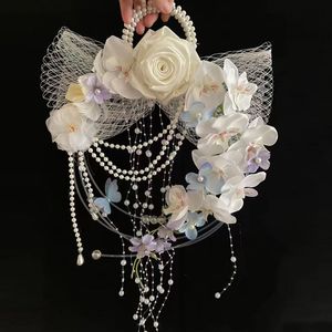 珍珠瀑布风信子手拎花新娘手捧花结婚拍照饰品手提式手捧花手工