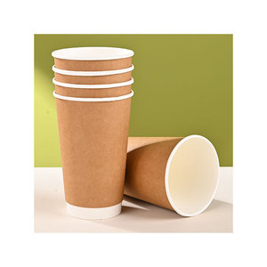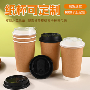 500毫升牛皮咖啡纸杯定制16盎司一次性奶茶杯双层隔热加厚中空杯