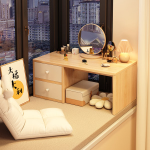 飘窗梳妆台奶油风卧室现代简约化妆台带化妆镜小户型榻榻米化妆桌