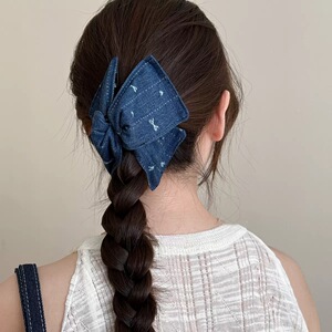 牛仔布三角抓夹女蝴蝶结爱心新款高级感盘发夹设计感后脑勺鲨鱼夹