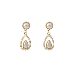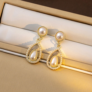 S925银针新款珍珠水滴耳环法式气质高级感时尚耳钉小众耳饰批发女