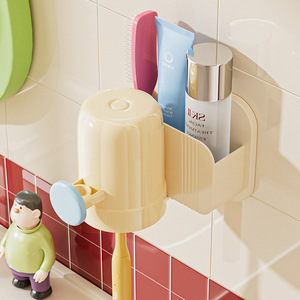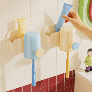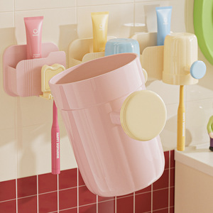 【爆款】多巴胺牙刷牙膏漱口杯置物架免打孔壁挂式卫生间收纳架