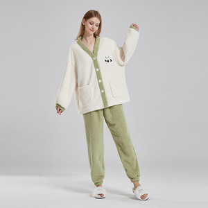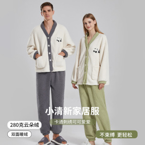 クロスボーダーカップルパジャマ女性の冬のコーラルベルベット肥厚ホーム服ハーフベルベット漫画パンダカップルパジャマセット