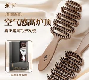 蕉下松塔猪鬃毛梳礼盒装蓬松护发梳按摩头部高颅顶神器代发批发
