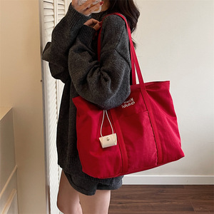 高级感防水红色包包女款2025新款女式托特包日常通勤大容量单肩包