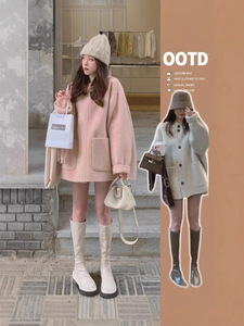 外贸呢子大衣女中长款新款秋冬韩版宽松赫本风小个子连帽毛呢外套