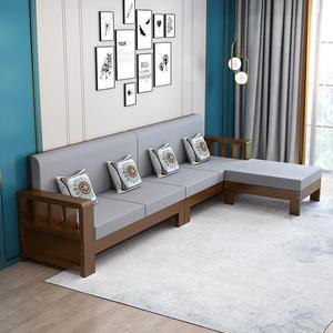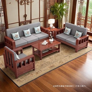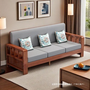 实木沙发组合新中式冬夏两用小户型现代简约经济木质三人位沙发