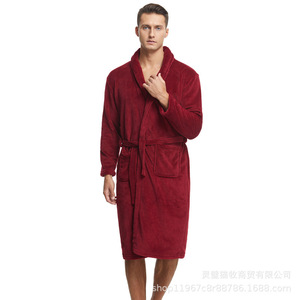 男性用パジャマ、秋冬フランネル厚くて長いコーラルベルベットパジャマ、冬用ベルベットバスローブ、男性用バスローブメーカー