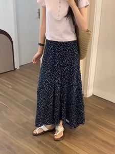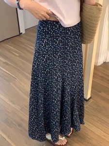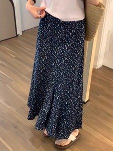 不规则藏青色碎花半身裙女夏季2025新款气质好看裙子长裙a字半裙