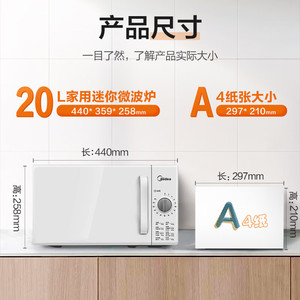 美的微波炉 家用小型迷你360°转盘加热 旋钮操控易洁20升PM2000