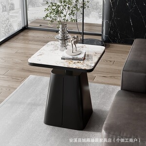 轻奢岩板边几小茶几沙发大理石简约家用客厅方几创意金属床头桌子