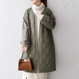 2色在庫あり日本と韓国で人気の女性用多用途中綿ジャケット、カラーブロックミドル丈中綿ジャケット