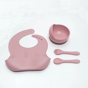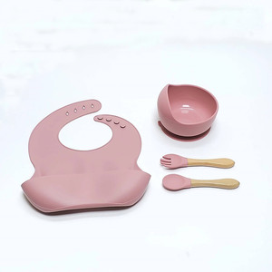 バーガンディ (子供用ボウル + スタイ + フルシリコン + スプーン + フォーク)