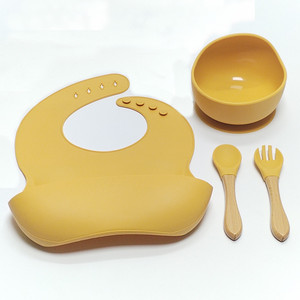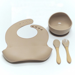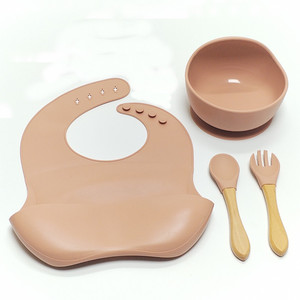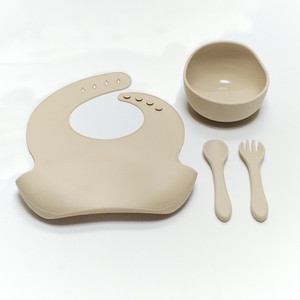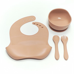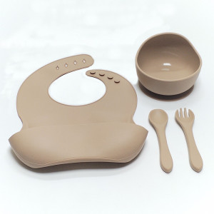 ライトブラウン(子供用ボウル+よだれかけ+フルシリコン+スプーン+フォーク)