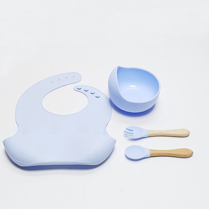 スカイブルー(子供用ボウル+よだれかけ+木製ハンドル+スプーン+フォーク)
